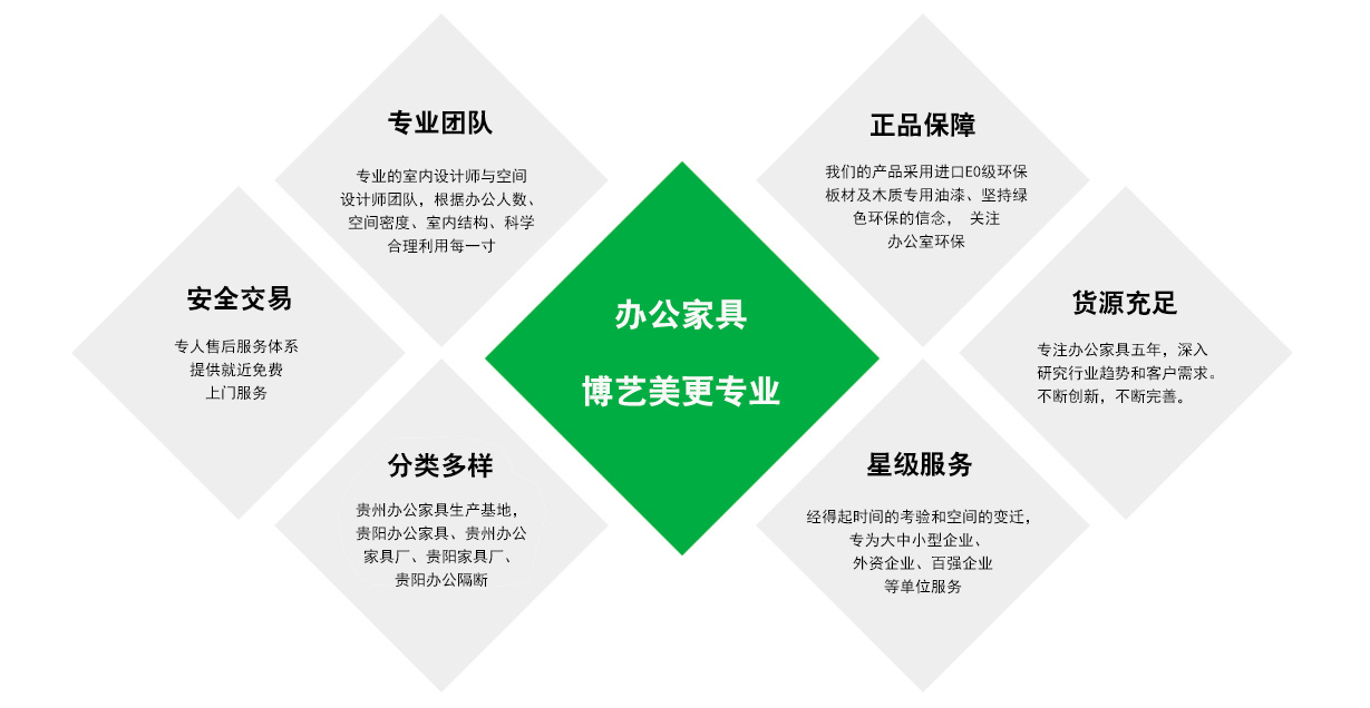 貴州博藝美辦公家具有限公司是一家集辦公家具定制、方案設計、制造銷售為主的貴陽辦公家具廠家,公司致力于為客戶提供品牌配套辦公家具,幫助客戶創(chuàng)造舒適的辦公環(huán)境,適中的價位方案。產(chǎn)品范圍包括:老板桌、經(jīng)理桌、職員桌、會議桌、文件柜、玻璃隔斷、辦公沙發(fā)、酒店家具、學校課桌家具、培訓桌、辦公椅、洽談桌等定制類家具。凝結藝術之美,張揚人性化辦公環(huán)境,詮釋優(yōu)質(zhì)辦公家具之精髓,努力為客戶營造舒適典雅的現(xiàn)代辦公環(huán)境。致力于打造貴州辦公家具廠家第一品牌,為提升整體辦公環(huán)境而努力!